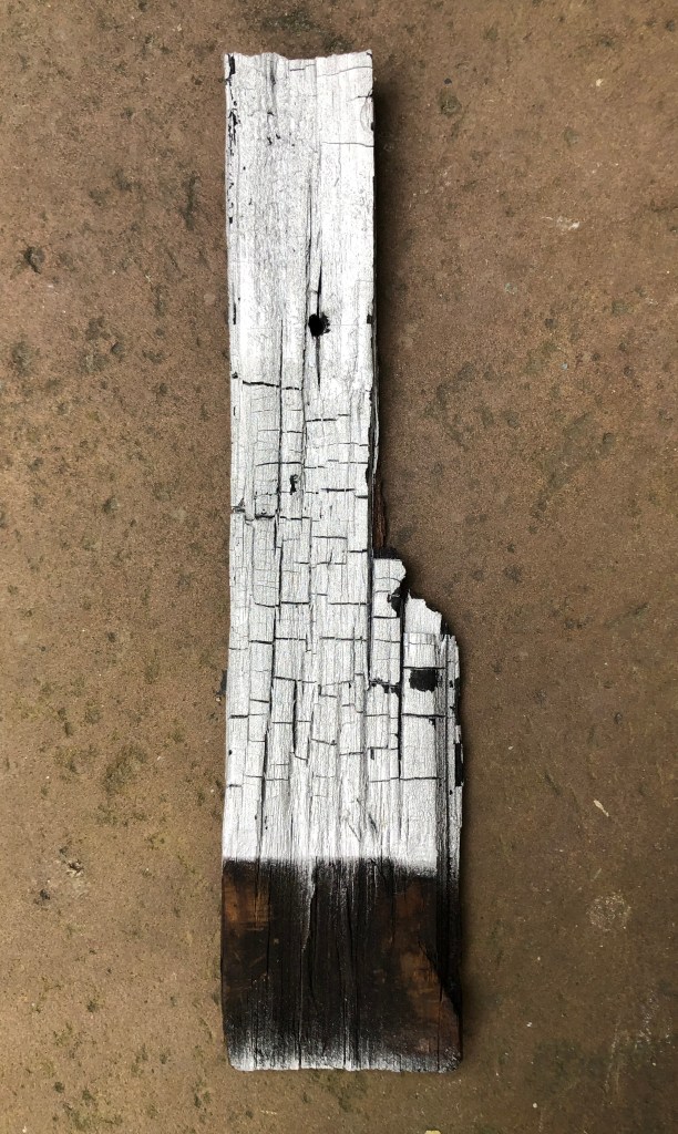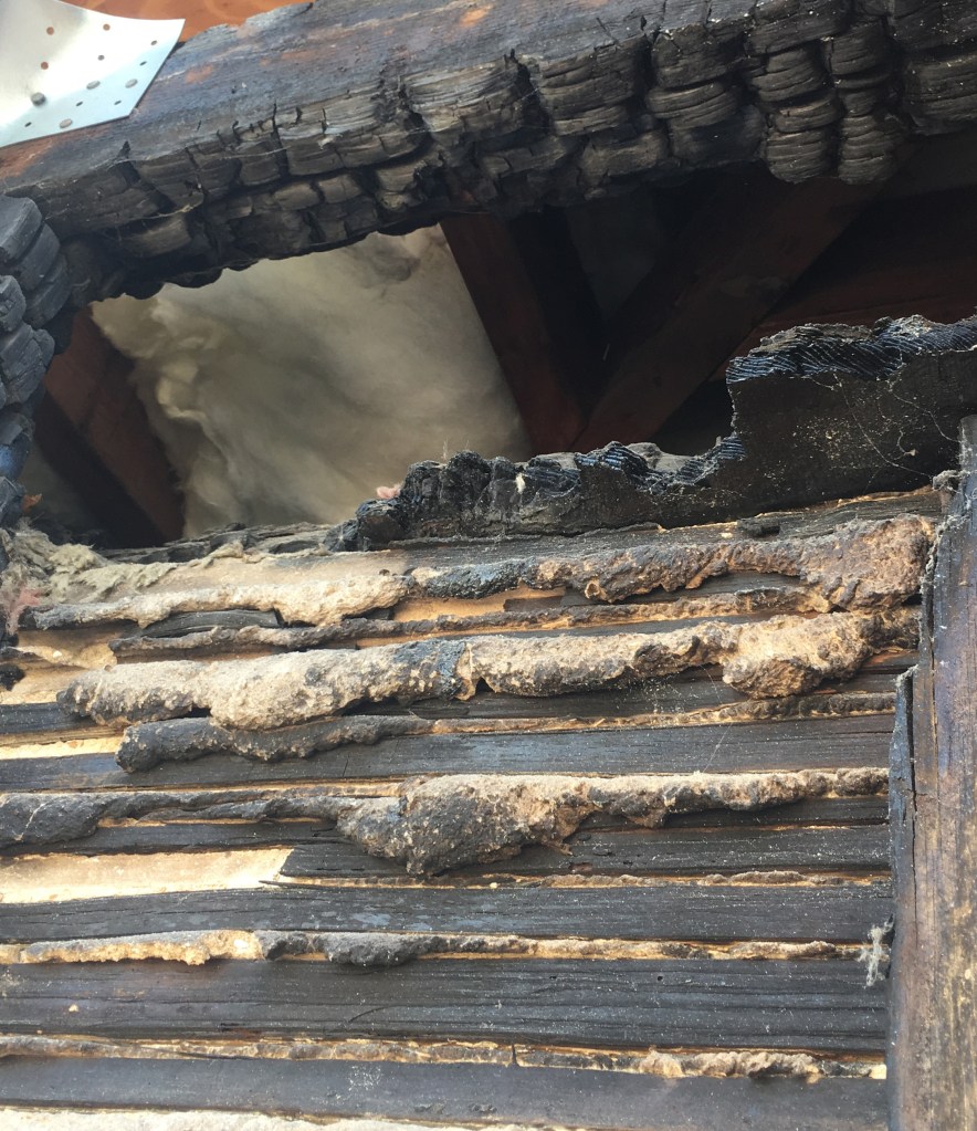 Another factor in the Chancognie House’s survival – old-growth pine. During the current renovation project here, some of the original framing and shingles were revealed (see photos below). While there was significant charring where the neighboring fire reached the house, old-growth pine is very slow burning, so the original house here survived with minimal damage. The later addition was not so fortunate and the upper floor was eventually removed due to significant fire damage before being replaced in the 1980s. If only these walls could talk!
