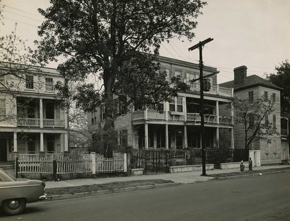 Thanks in large part to the efforts of the Charleston Fire Department, the impact on the house here was minimal considering the intensity of the blaze next door. The article noted that the Chancognie House “suffered extensive fire damage to the attic, where a cedar shingle roof, under the tin roof, caught fire.” A later addition at the rear of the house was severely damaged, but fortunately for the main house, “[e]xcept for repairable water damage, most of the house’s interior, with Adam-style woodwork and mantels, escaped harm.”