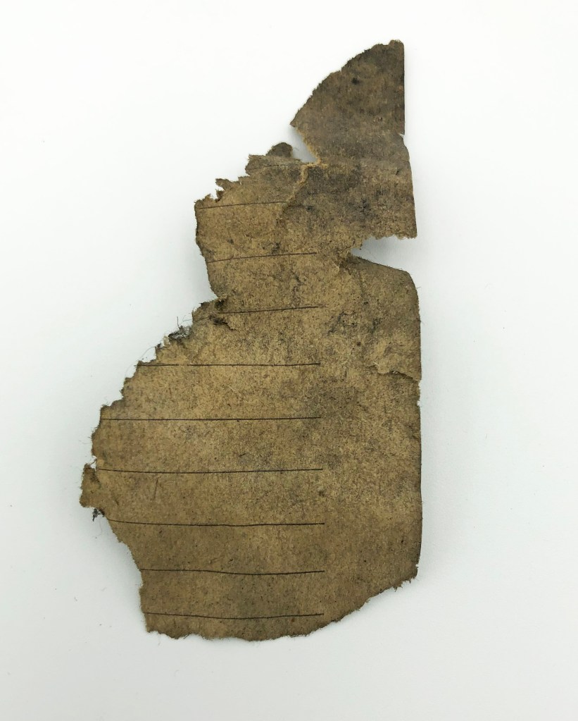 If only the rats had taken a slightly bigger piece of paper for their nests! As a last-ditch effort, I decided to sort through the pile of smaller paper fragments to see if there might be any pieces that I had missed. There was one tiny scrap. With the only complete words being “road,” “away,” and “good,” and a partial word that could possibly be “remedy” or “remedies,” I doubted that it would be very useful. But it turned out to have just enough information to find my mystery man.