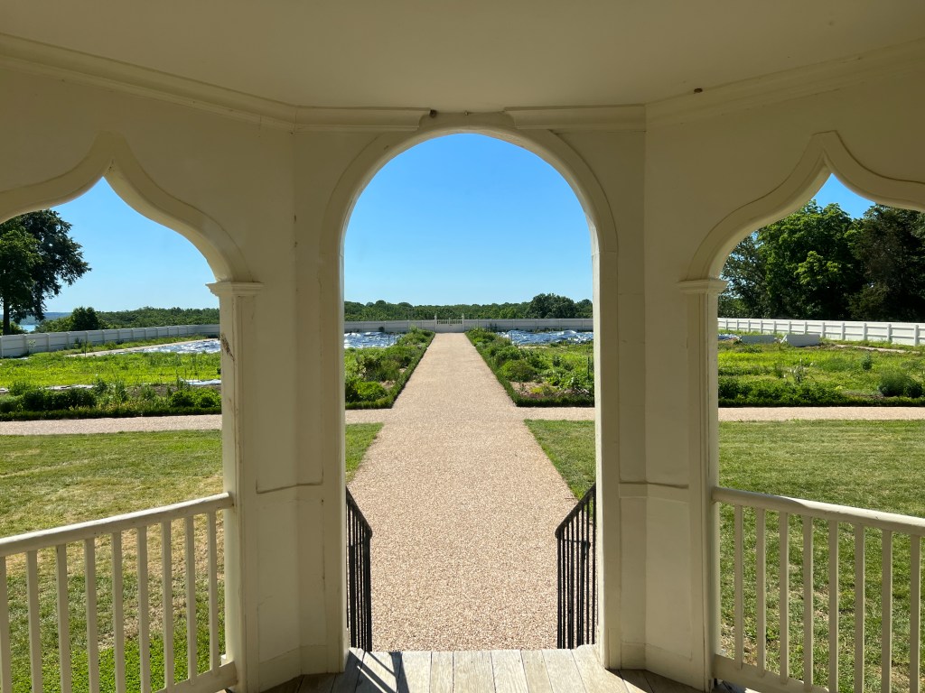 The landscape at Gunston Hall is in the midst of an ambitious makeover. Over the centuries, trees and plants were put in, many of them were lost and replanted with new species, and the original boxwoods in the garden succumbed to blight. Plans for Mason’s original landscape survive and looking out over the garden from the river side of the house, the original view would have been a pleasure garden with flowering plants in the front with a row of espaliered fruit trees to screen a kitchen garden in the back. The long row of magnolias and cedars along the drive will be replanted with cherry trees in Mason’s original design which created an optical illusion so that visitors standing in the middle of the doorway would only see one tree on each side of the path.